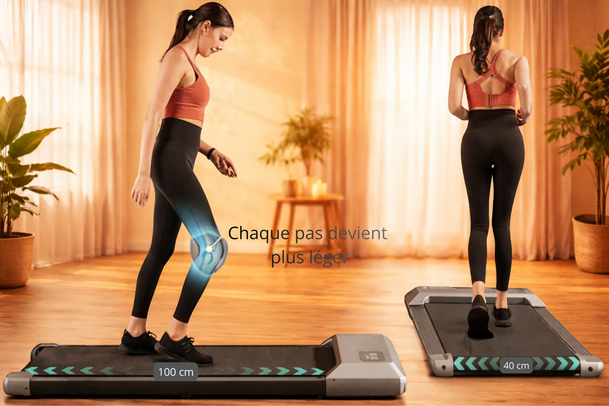 -Surface de marche confortable : systeme d amorti concu pour reduire la pression sur les genoux et les articulations