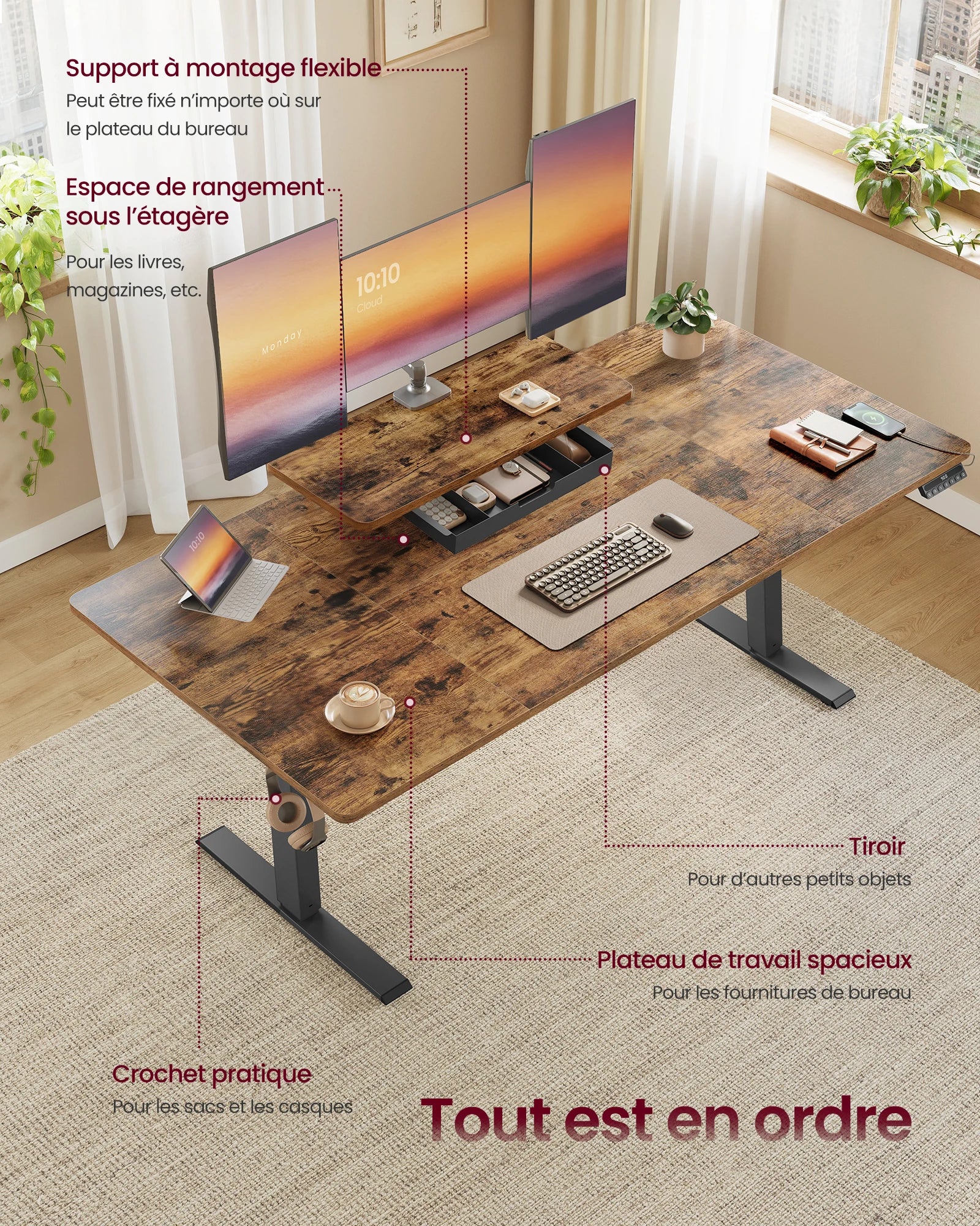 -Tiroir intégré : rangement discret pour garder votre espace de travail organise